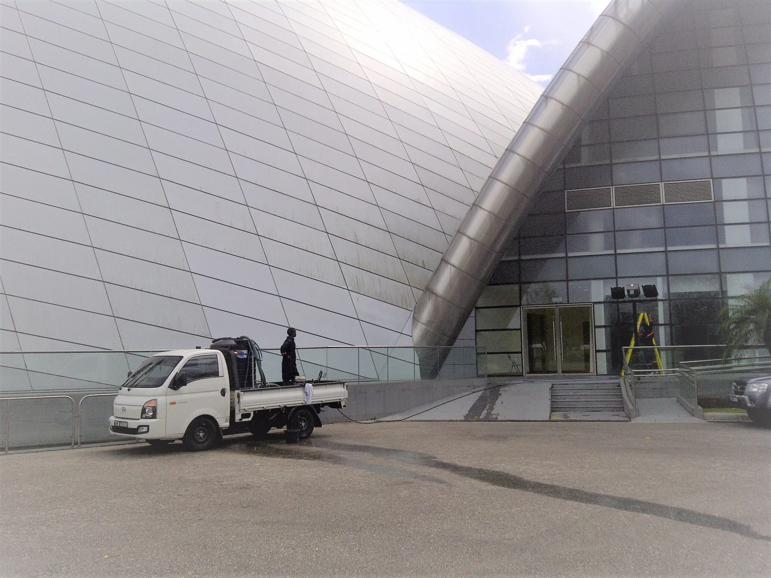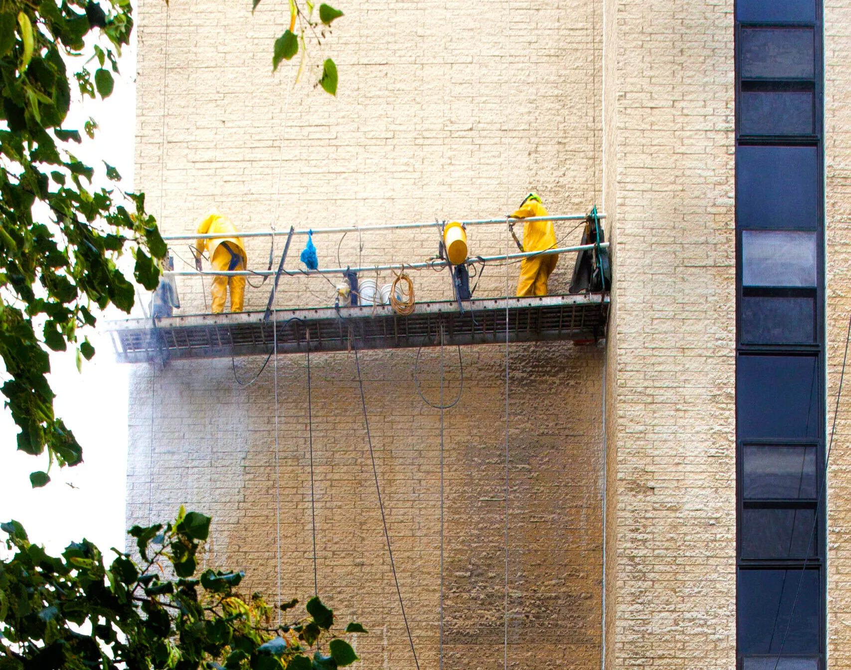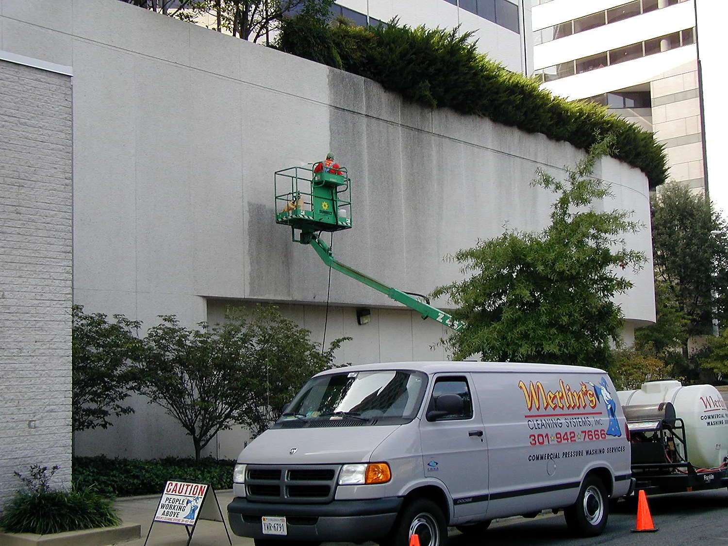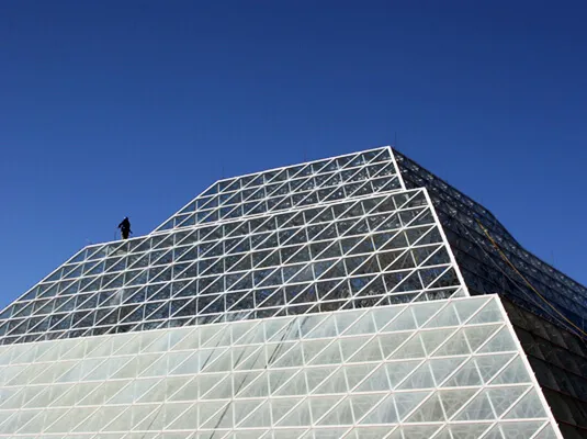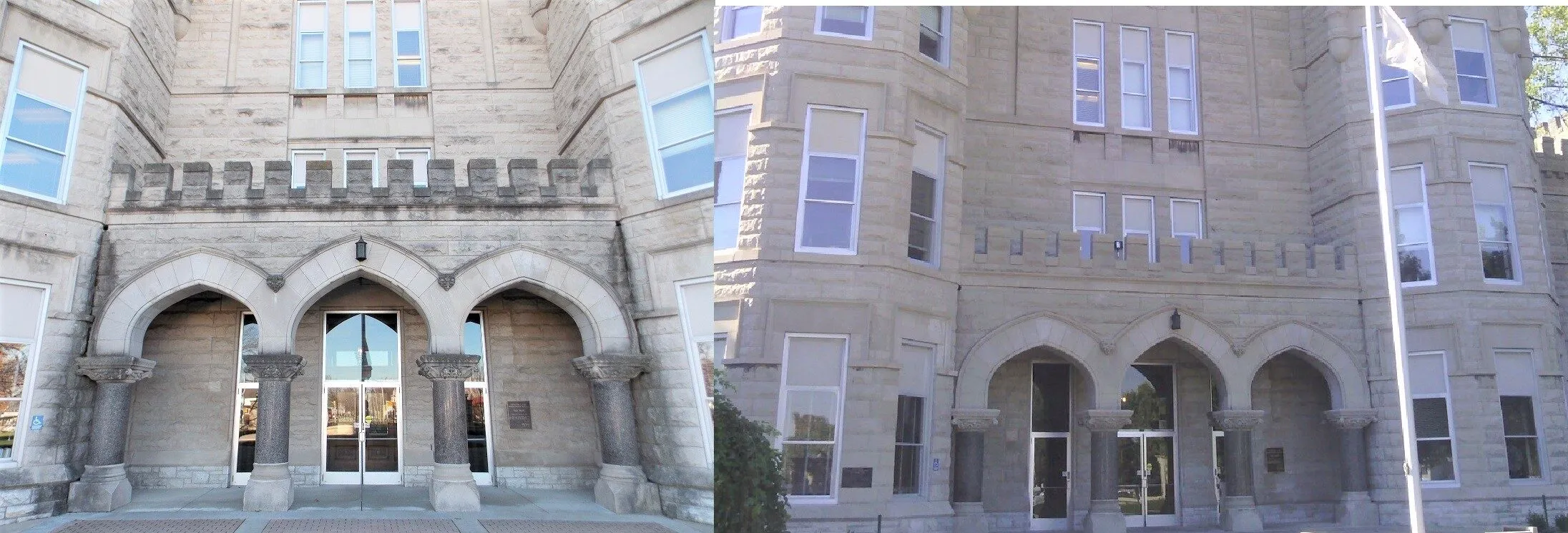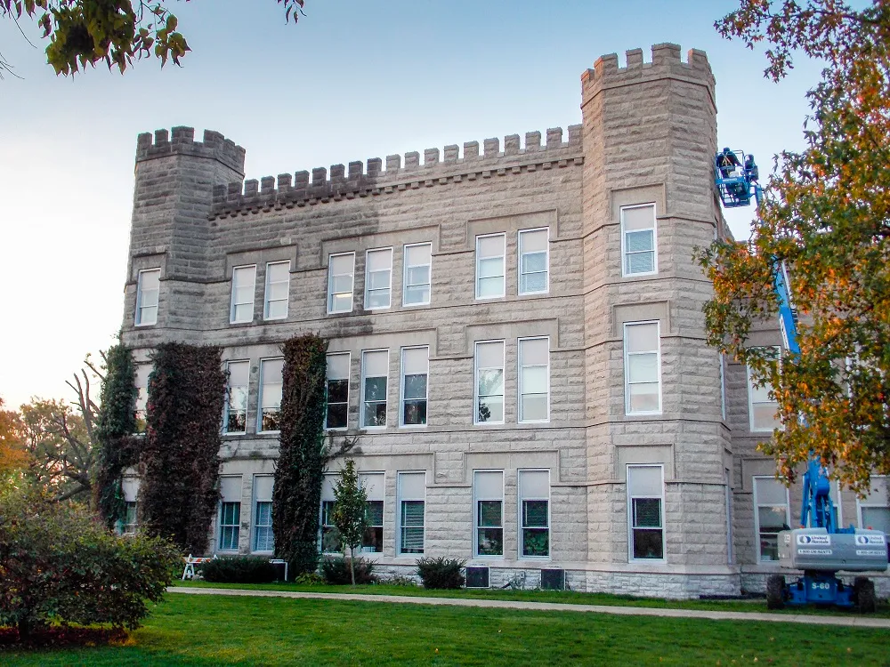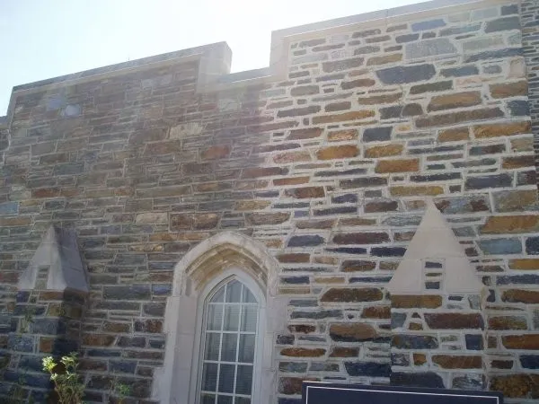 This building was designed by the renowned architect Frank Gerhy. The building is of note due to all the various angles which, though very interesting visually, provided a challenge when removing the mortar smears and excess droppings. The mortar droppings clung to many of the angled surfaces which were more horizontal than vertical. This remarkable structure was cleaned without affecting the mortar joints or the angled surfaces. NMD 80 left the building with a clean surface that allowed the design to stand out instead of the excess mortar.